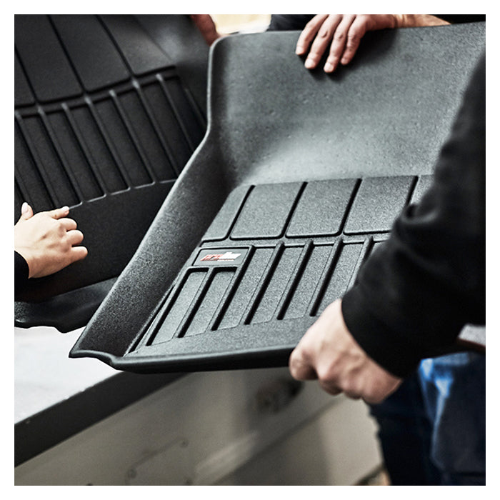 Måtten har en praktisk kant på 7 cm, som håller kvar skräp och smuts och skyddar bilens original matta, och den är enkel att rengöra. Den eleganta satinfinish ger bilen ett exklusivt utseende, medan det intuitiva monteringssystem gör det enkelt att fästa mattorna till de originalspärrar. En ekstra halkfri yta ökar sikkerheden och forhindrer oönskad rörelser under körning.